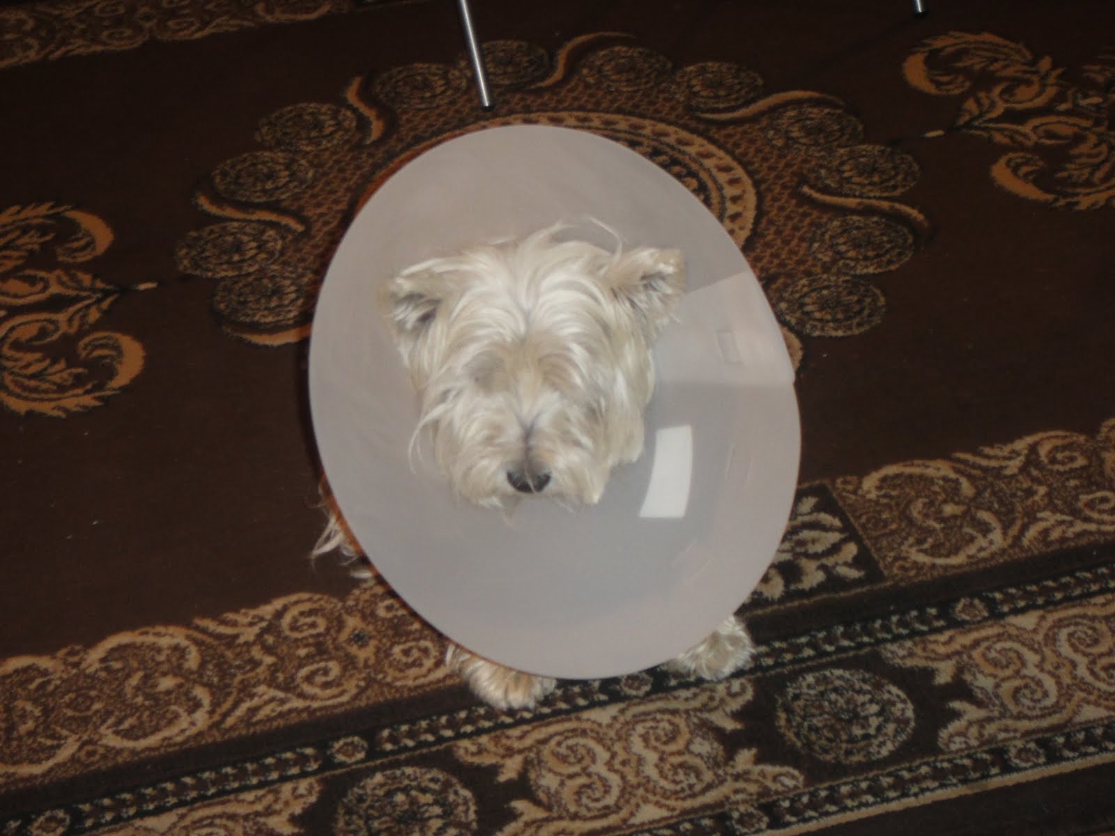 well here are the pictures!! She did not have "cherry eye" after all. The Dr said it was an injury just above the cherry eye gland that caused the swelling. The surgery went well. The Dr still did everything she would have done if it was cherry eye. Due to the fact Harlen and I are so dedicated to these two little girls, she gave us a nice discount. Maddie must have injured herself without us knowing it. She does go at it with the dogs next door. They get on their side of the fence and our girls on our side and it is on. We always bring them in as soon as it starts. All I know is someway, somehow her eye got injured with no outside signs. Believe me we brush their teeth and I always clean out their eyes every day and never noticed a problem. It must have started inside, very deep, and then pushed the gland up and outside the eye. Hope you enjoy the pictures. She is still pretty out of it. Tonight should be quite a time. I don't know how she