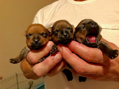 Time flies! Katie and Woody (aka Jet's) puppies are 3 weeks old. Pretty much the cutest puppy pictures in world....ok I may be a bit partial. From top to bottom are the girl then her brothers.